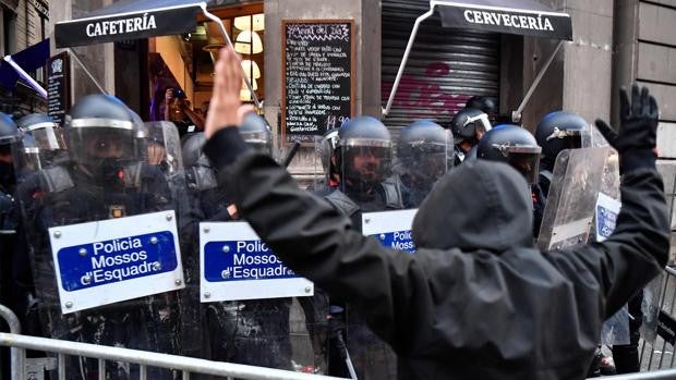 Pocos minutos después, un gran despliegue de furgones de la Brigada Móvil de los Mossos ha cruzado la vía Layetana para dispersar a parte de los concentrados. Posteriormente, los agentes antidisturbios han salido de sus vehículos y los manifestantes violentos han huido a la carrera por las calles aledañas. «Es como un juego para ellos», comentaba una mujer de mediana edad mientras esperaba junto a la entrada de un comercio a que se dispersase la marabunta.